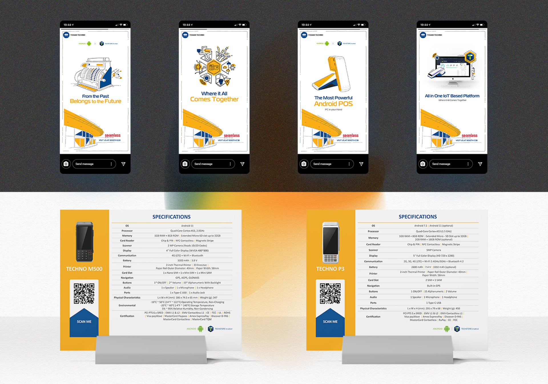 Campaign for the Seamless exhibition in Dubai. The banners highlighted our brand and new product launches, Instagram stories teased daily product reveals, The tabletop stands provided clear and concise information about the products. The overall goal was to strengthen our presence in the payment solutions industry and forge new relationships.